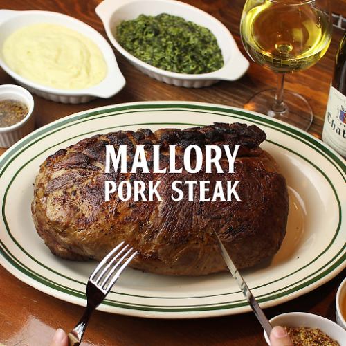 山の名前を冠した当店自慢のポークステーキは200gから2kgまで巨大で極厚! リーズナブルでお腹いっぱい!